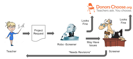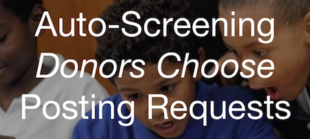 An exploratory analysis and prototype for automatically screening DonorsChoose.org projects using machine learning techniques. See also the presentation.