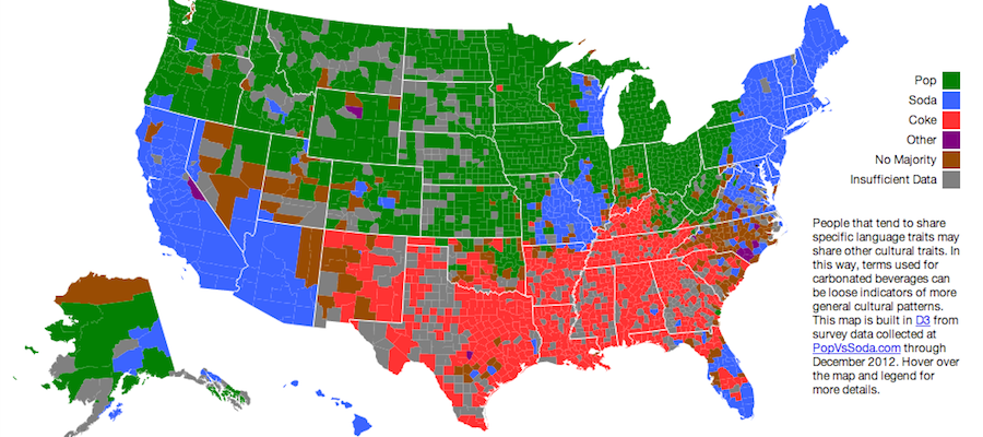 Pop, Soda or Coke? An interactive choropleth map demonstrating regional differences in what we call soft drinks.